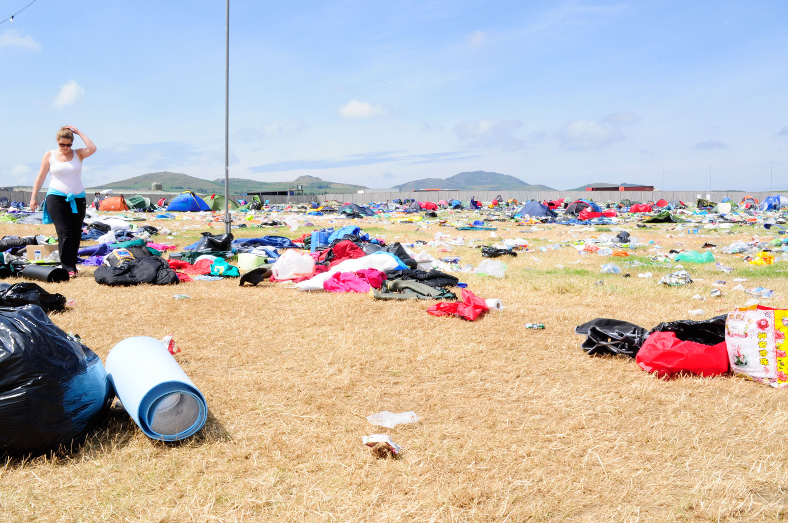 Festival-goers’ abandoned tents at Wakestock, Wales